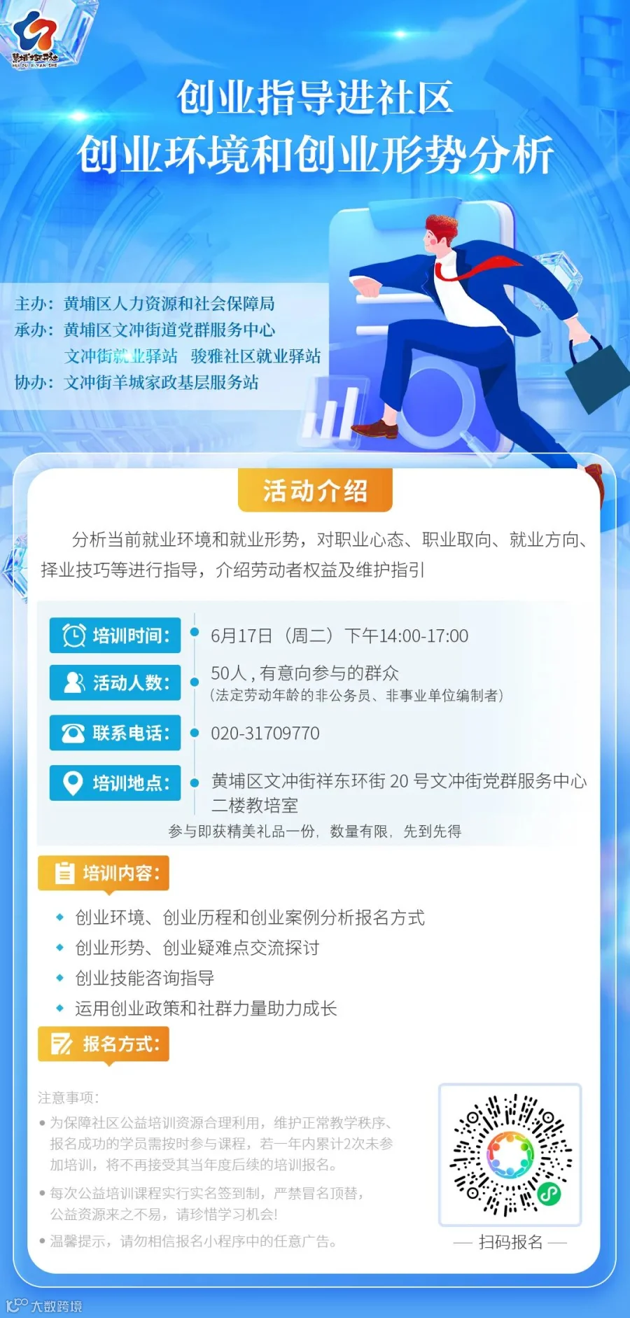 举办一场创业指导进社区活动