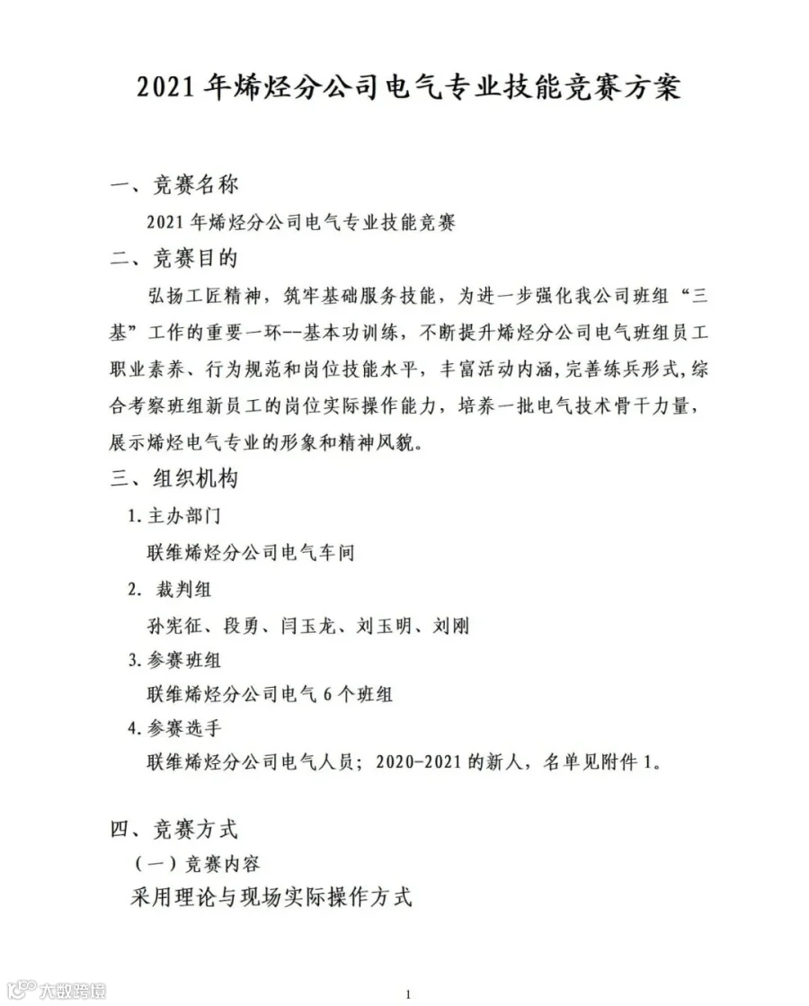 本次竞赛参赛人员为烯烃分公司2020年-2021年入职的电气专业新员工,考核内容分为理论知识考核和实操技能操作两部分。
