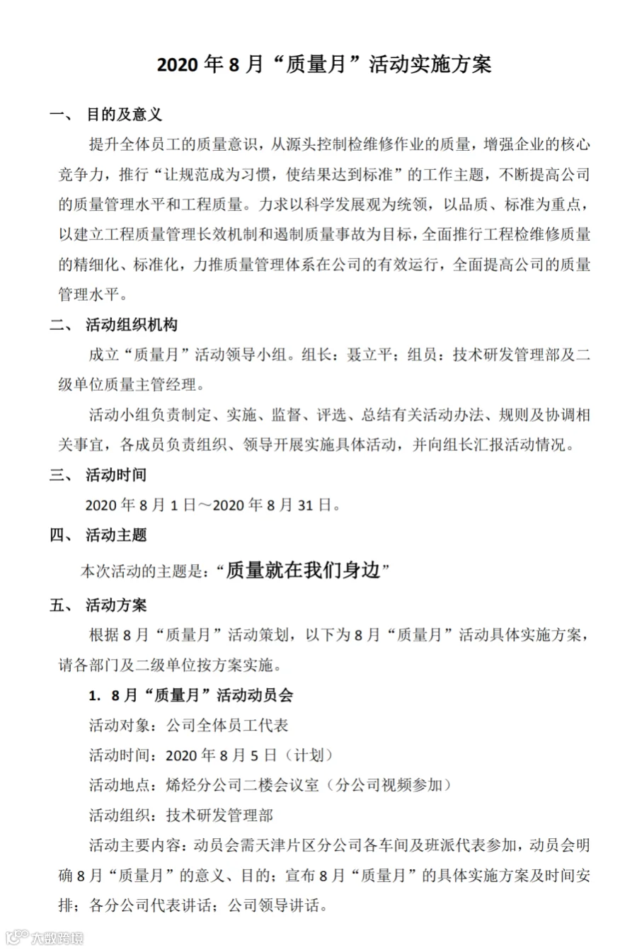 9月,为期一个月的质量月活动圆满落下帷幕。为确保“质量月”活动发挥实效,前期公司技术研发管理部结合公司实际情况制定了详细的“质量月”活动方案。