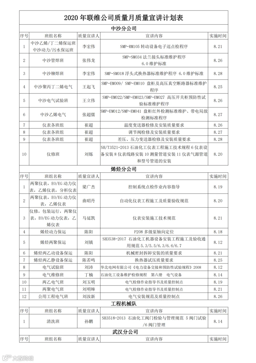 质量是企业的生命力,为提升全体员工的质量意识,推行“让规范成为习惯,使结果达到标准”的工作理念,从源头控制检维修作业的质量,增强企业核心竞争力,不断提高公司的质量管理水平和施工质量,8月公司技术研发管理部组织开展“质量就在我们身边”主题质量月活动。