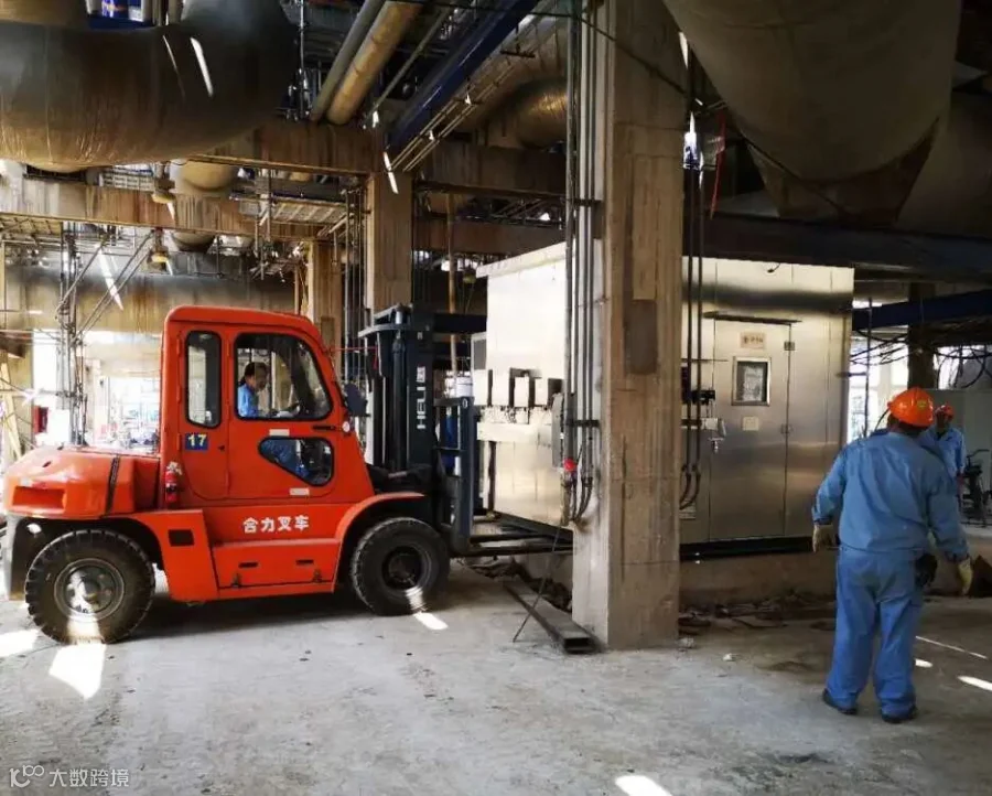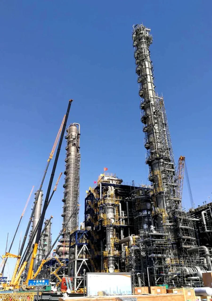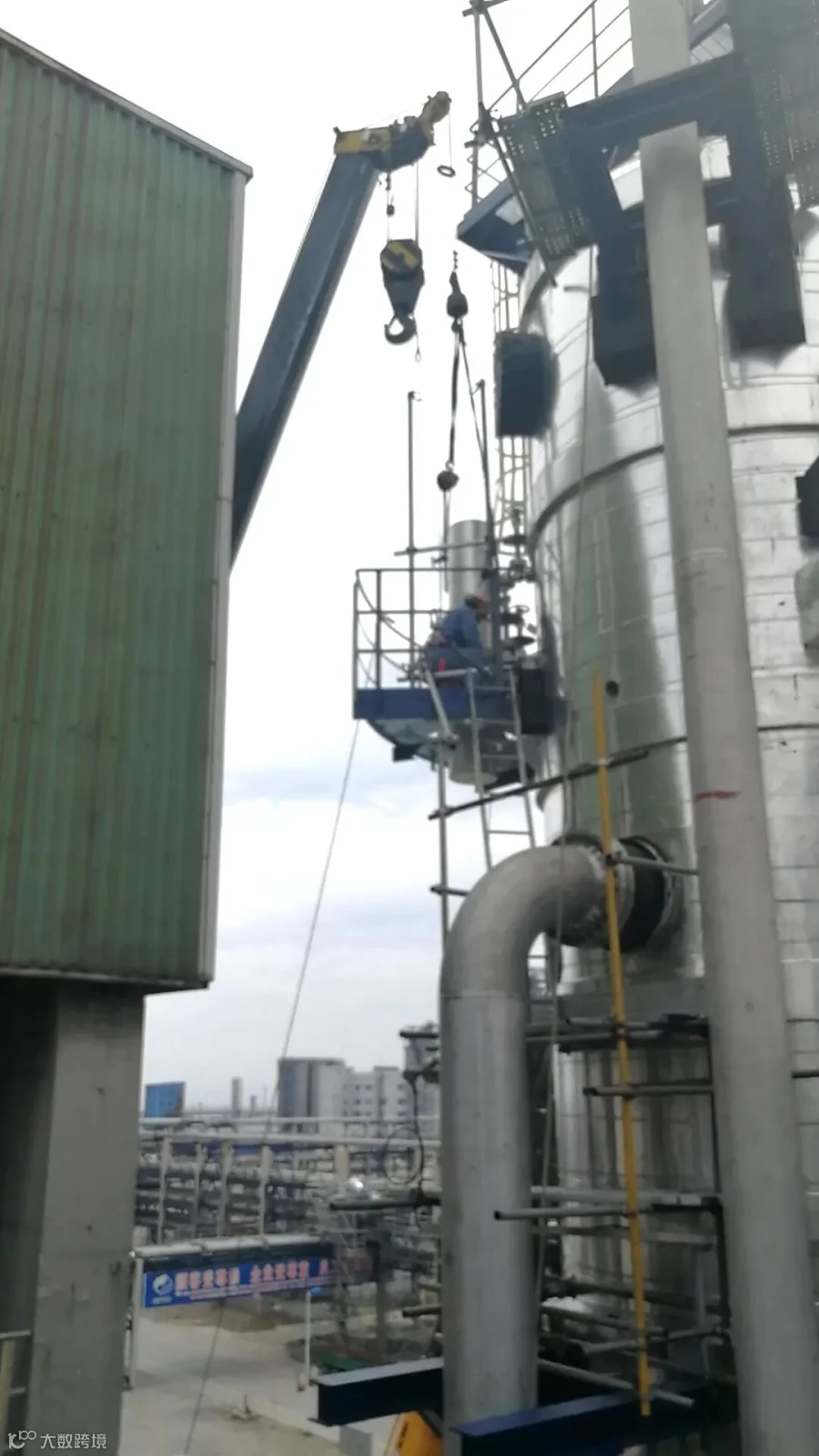 在高大的装置和大型机具的映衬下