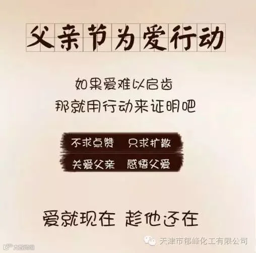 导读:珍值此父亲节即将到来之际,我谨代表郁峰化工全体同仁向您父亲致以节日问候和崇高敬意:因为他的培育和训导我们才