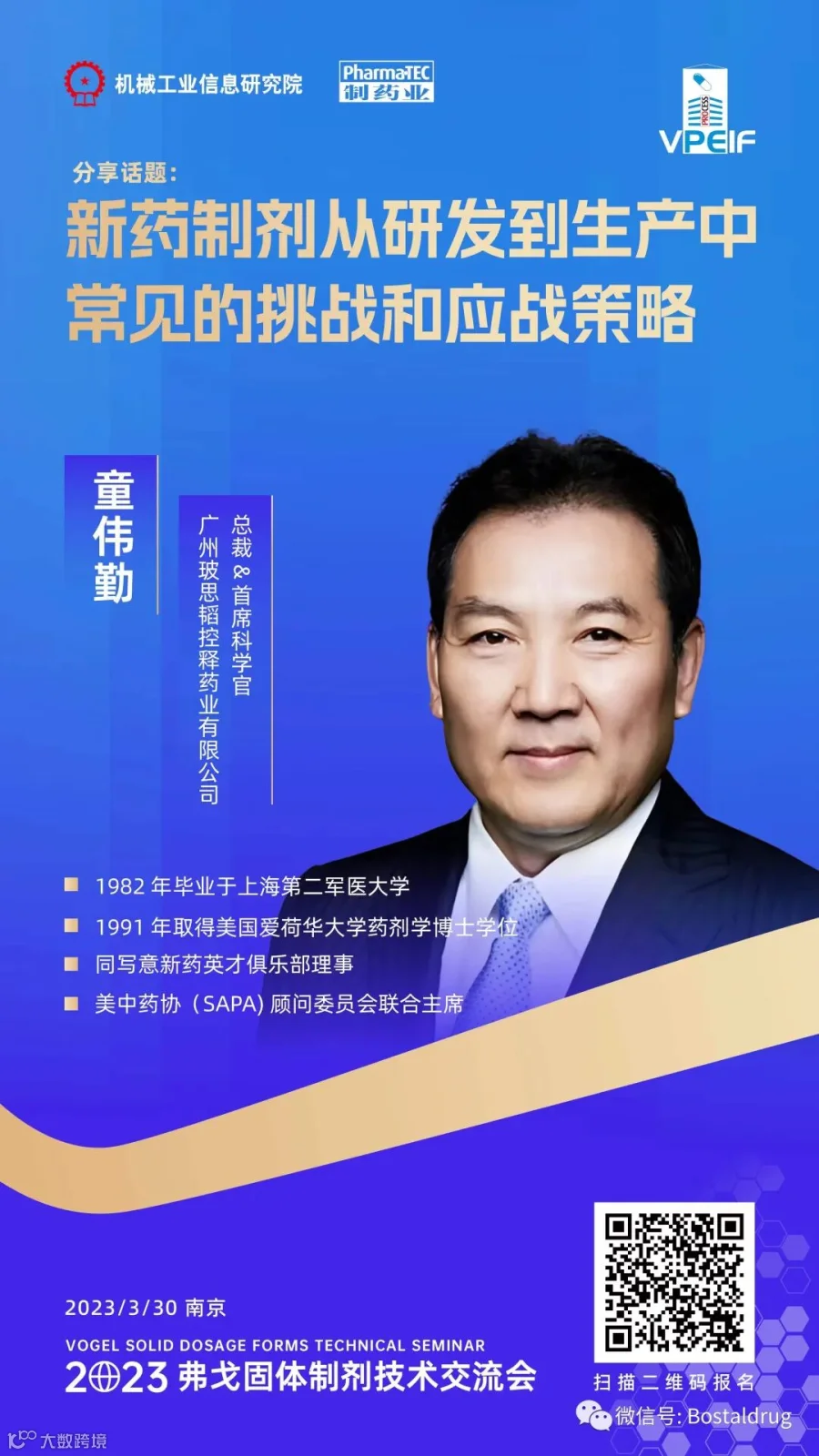 3月30日,玻思韬首席科学官兼总经理童伟勤博士受邀参加2023弗戈固体制剂技术交流会,进行题为《新药制剂从研发到生产中常见的挑战与应对策略》的主题演讲。本次大会以“新技术、新工艺、新设备为主题,围绕固体制剂研发和生产过程中,创新制度重要技术和关键装备如何满足制药工业新的需求和挑战,邀请制药领域的行业专家。制药企业生产禾生产企业、制药设备供应企业、政策管理机构、研究院所以及行业协会的专业人员参会,深入探讨应对药品成本控制、快速研发、高效生产、设备升级、安全合规挑战的思路和经验。