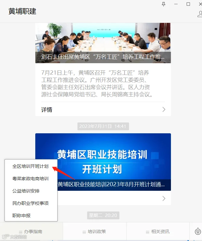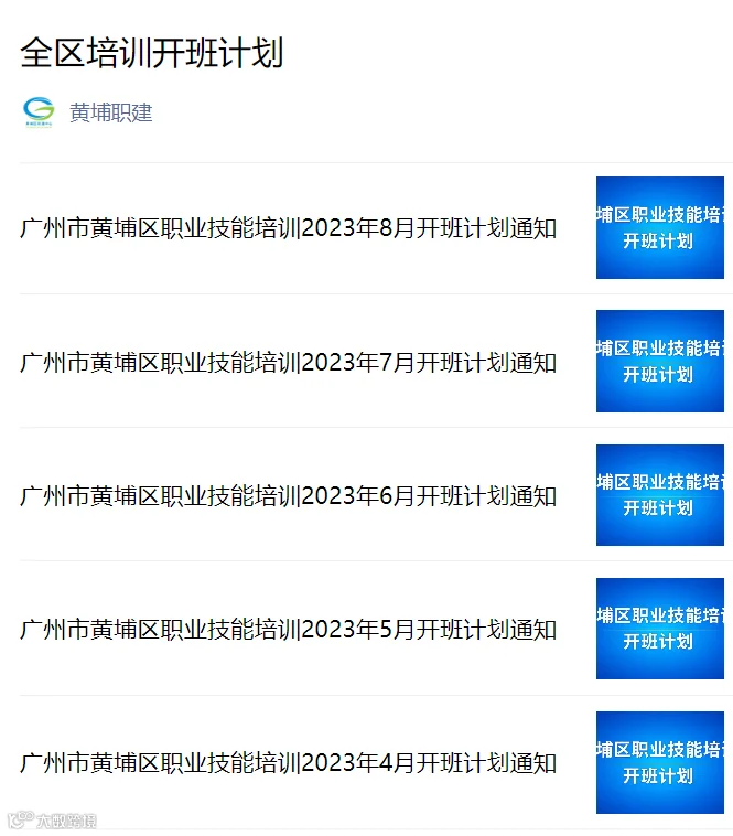 可关注本公众号(黄埔职建),并通过点击公众号对话框底部菜单“办事指南”-“全区培训开班计划”获取。