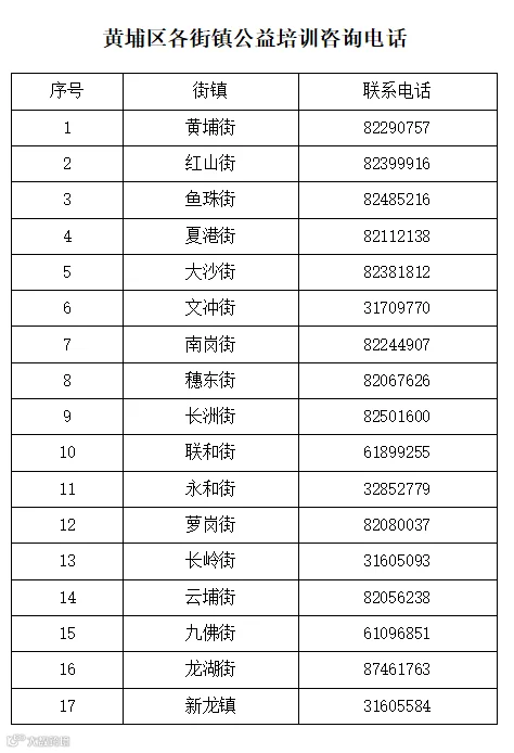 2、除上述开班计划外,您也可以直接联系所在街道咨询近期的公益培训开班计划。