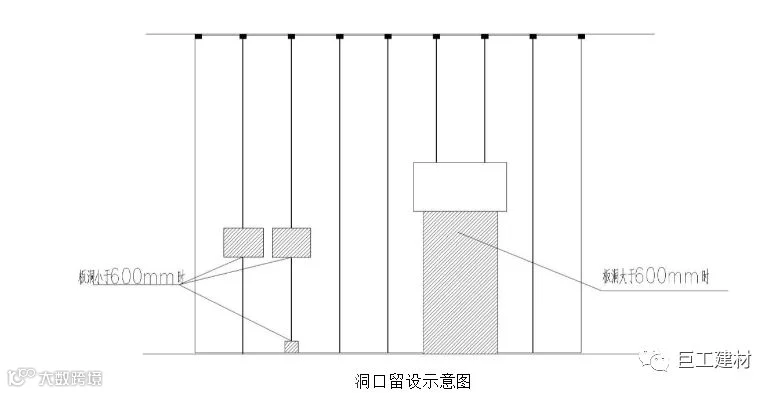 板上留洞小于600mm时,考虑ALC板易破损及其固定方式,板材排板宜将洞口设置在两板拼缝处,即可减少单块板材破损面积,亦可优化留洞处受力情况。