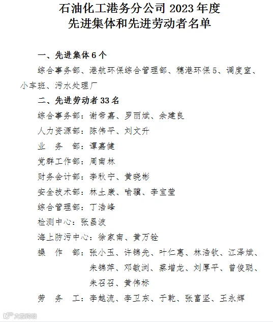 刘厚平同志负责从化劳务公司一队的安全监督工作,主要对一队人员的码头安全生产工作的全程监控监管。2023年8月20号,东码头,“鼎衡36”,装航空煤油到09:55时,刘厚平同志发现船上排气管线渗油。及时通知现场值班人员,船方关好阀门,并加班加点与石化厂值班人员共同处置相关工作,确保码头生产的畅顺。