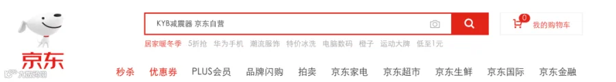 2、打开京东App,在搜索框输入“KYB减震器 京东自营”,点击进入就能购买到KYB产品。