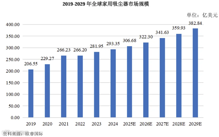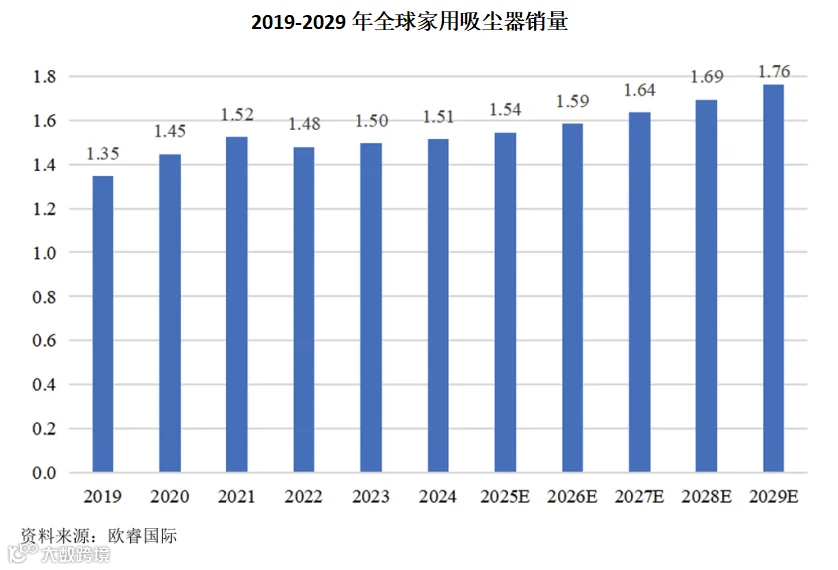 报告期内,全球家用吸尘器销量稳步增长,预计至2029年,全球家用吸尘器销量将增长至1.76亿台,市场规模将达到382.84亿美元。