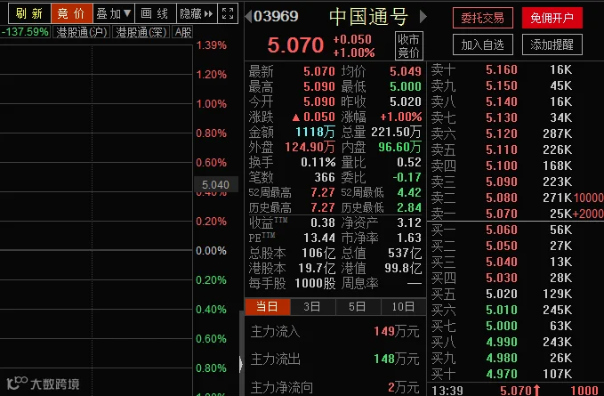 此外,极高的市盈率必然会带来市值的大幅增长。中国通号作为一家AH股同时上市企业,目前以1142亿市值稳居科创板市值第一,而港股市值则仅仅有其一半。可见虽然同为一家企业,在不同的市场投资的环境有所不同,对企业的估值水平也不尽一样。