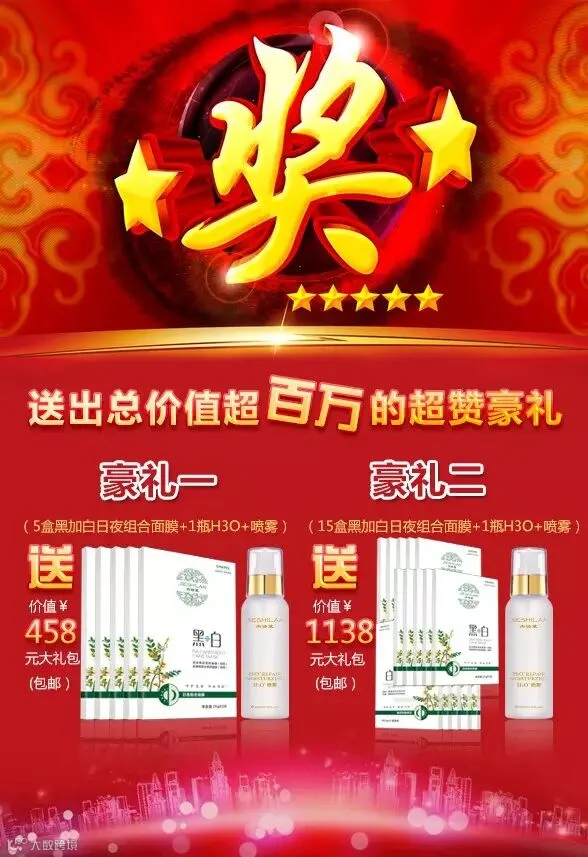 豪礼二:送15盒杰诗蓝“黑+白”日夜组合面膜以及一瓶H3O+防晒喷雾(总价值1138元)包邮