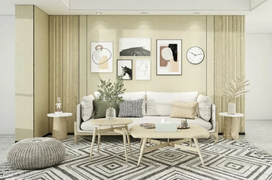 整体莫兰迪为基调,用白色为点缀,彰显客厅空间的舒适和品质。
