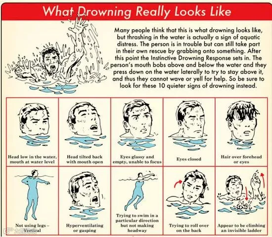 很多溺水者尤其是不会游泳的孩子,在溺水时并不像多数人以为的那样,会猛烈拍水大声呼救;相反,溺水几乎总是悄然发生,很可能大人就在附近而浑然不知。