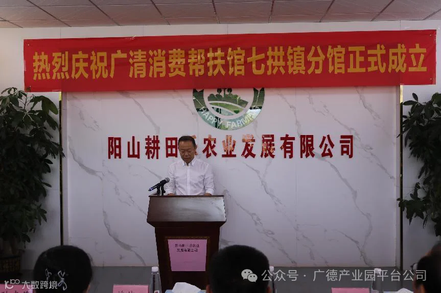 贺进云在致辞中表示,“广清消费帮扶馆”作为广清对口帮扶协作的重要平台,此次七拱镇分馆的挂牌成立,不仅标志着广清消费帮扶工作的进一步深化和拓展,也为清远乡村的全面振兴事业注入了新的活力和动力。同时希望驻镇帮镇扶村工作队广泛动员社会力量参与消费帮扶工作,加强宣传推广,营造良好氛围,扎实做好消费帮扶工作,助力七拱镇乡村振兴事业取得更大成就。