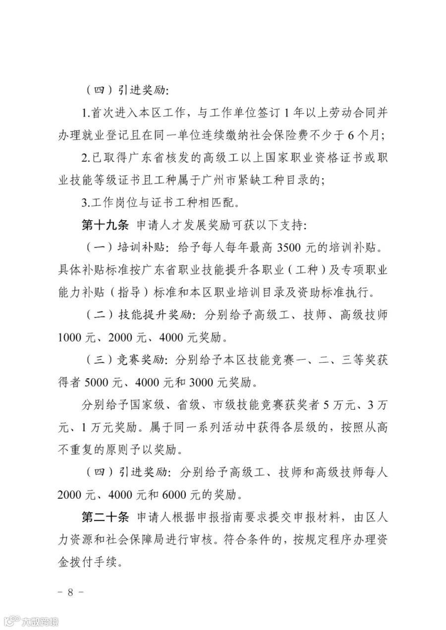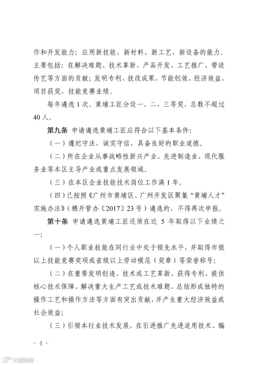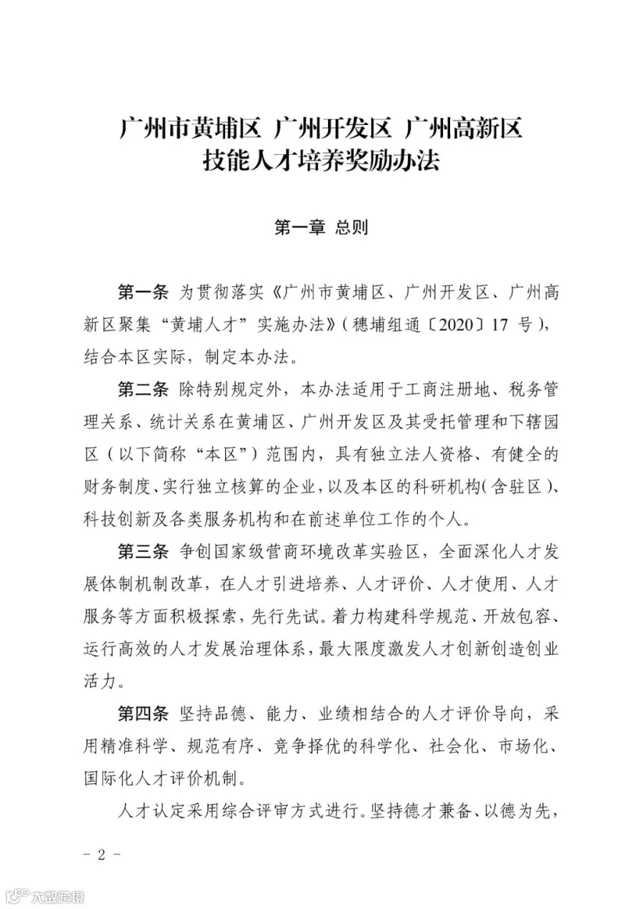 导读:广州市黄埔区 广州开发区 广州高新区技能人才培养奖励办法