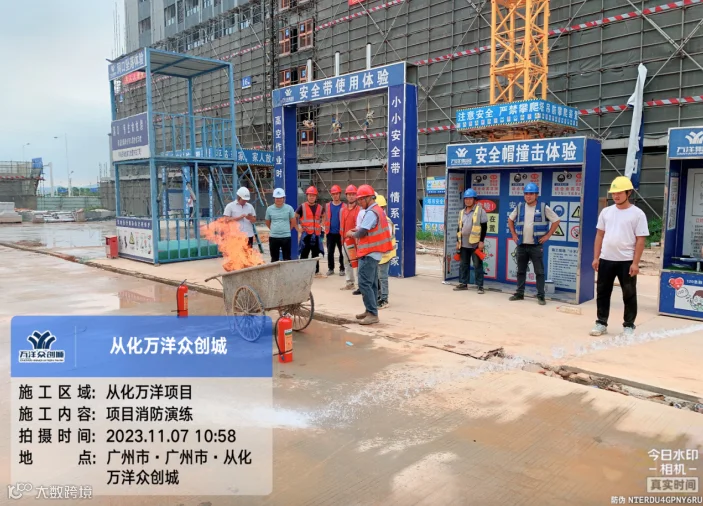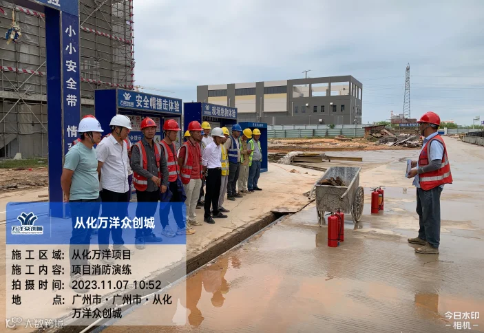 本次演练活动由广州(从化)万洋众创城项目部、从化万洋项目监理、从化万洋建设项目管理人员、现场带班及工人代表组成,旨在规范安全生产,提高现场工人及管理人员消防安全意识,让现场人员了解消防用品的使用方法,提高突发事件的现场应变能力。