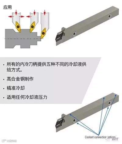 内冷刀柄提高刀片的性能和产品表面质量,特别是应对难加工材料,如:不锈钢和超级合金。