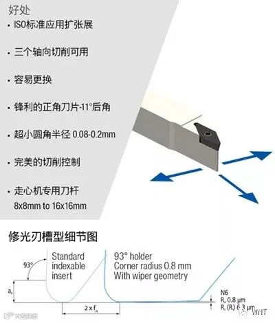 结合修光刃槽型及93°刀柄的TriClamp系统,可实现进给翻倍。缩短加工时间,并不会影响工件的表面质量。或在相同加工时间的情况下,工件的表面质量可有效提升。该系统支持两个及以上多方向加工,很强的灵活性。