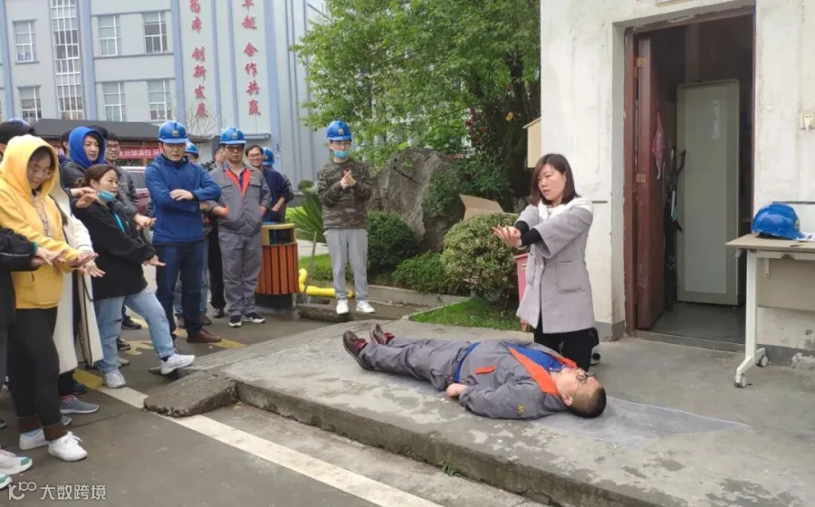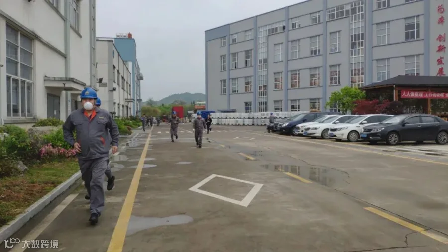 21日下午3点,随着演习的拉开,听到警报后,员工们捂住口鼻,躲避“浓烟”,立即迅速有序的从安全通道撤离,到公司大门口紧急集合点集合 。