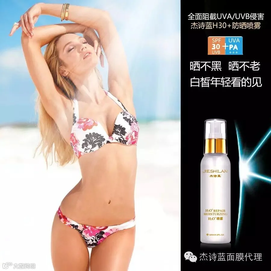 杰诗蓝H3O+防晒喷雾,小嘴挤压设计,轻轻一按,喷出水雾状液体,迅速令肌肤柔滑细嫩。富含精纯芦荟等多种保湿精华,水润质地迅速渗透,即刻提升肌肤保水力,同时有效预防晒伤并解决肌肤缺水问题,常保肌肤水嫩幼滑。高效防晒,能在肌肤表面形成一道隐形隔离层,持久保护并全面阻断UVA/UVB及环境污染对肌肤的侵害。