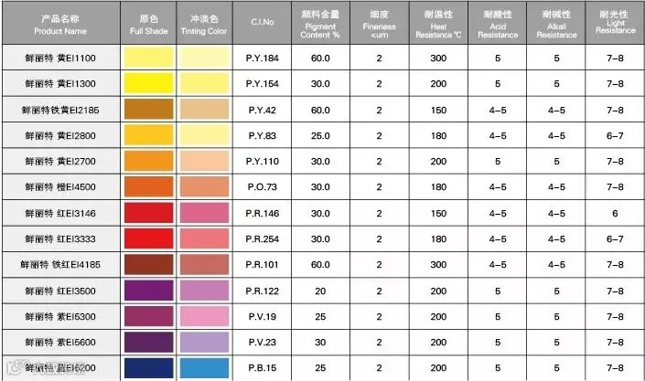 鲜丽特EI系列产品有共25个不同的颜色;可单独用于着色,也可以根据客户自己需求进行调色。