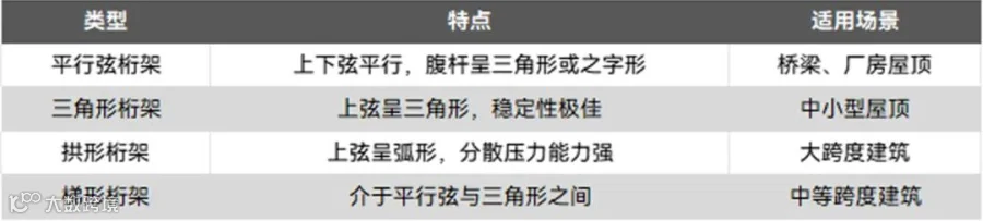 桁架是一种由直杆通过节点连接而成的刚性结构体系,主要特点: