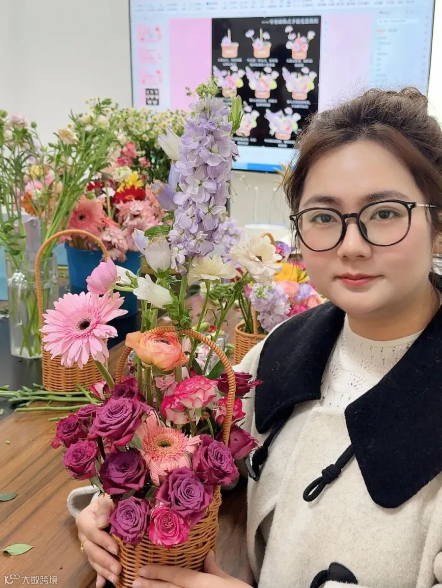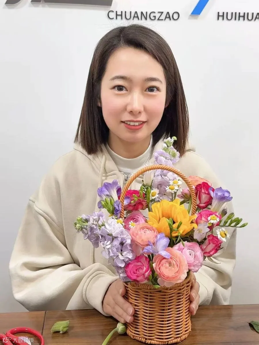 经过一番精心创作,一束束造型优美、寓意美好的花艺作品新鲜出炉,大家手捧自己的作品合影留念,定格下这一温馨美好的时刻。