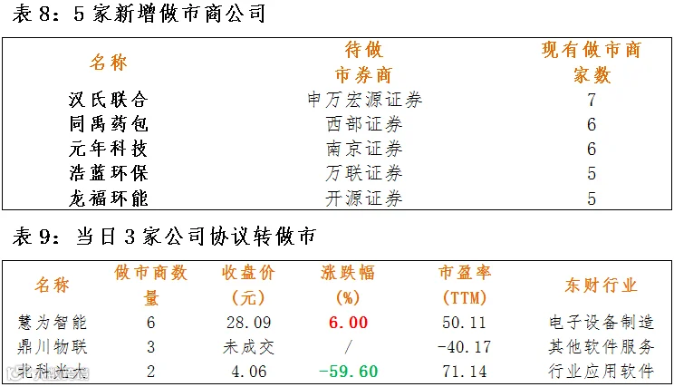 3家协议转做市,5家公司新增做市商