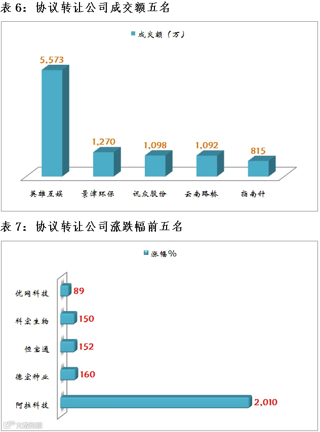 做市企业中有818只个股参与交易,成交额4.76亿元。其中367只个股上涨;7家做市企业成交额破千万,成交额前三名为:卫东环保4274万、麟龙股份4153万、晓鸣农牧4012万。