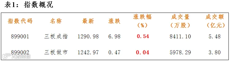 三板做市指数开盘震荡上行后略有回落,午盘指数下行,尾盘拉升翻红。收报1242.97点,上涨0.47点,涨幅0.04%。