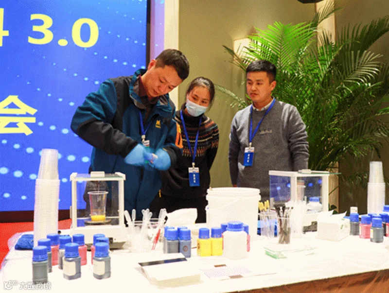 并现场演示了两个实验,一个是色相对比,实验结果展示了纳美色浆良好的着色力。另外一个实验是测试产品的兼容性。实验结果表明纳美的水性工业漆树脂体系相容性好,高光体系的保光效果好。纳美色浆产品通过其优异的产品性能获得现场嘉宾的高度认可。