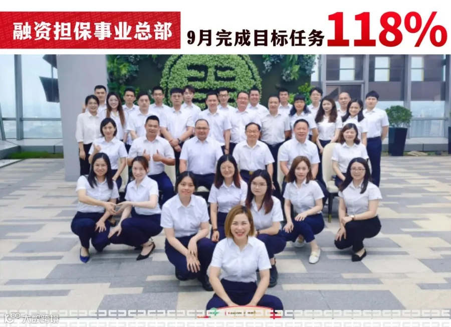 融资担保事业总部完成目标任务118%。融资担保事业总部贯彻 “稳字当头,稳中求进”的工作思路,全员保持乐观进取的敬业精神,在项目上报、审批、出款等各个环节均做到部门前中后台紧密合作,把风险控制放在首位,同时铆足干劲推动业务进度,顺利完成9月目标任务。