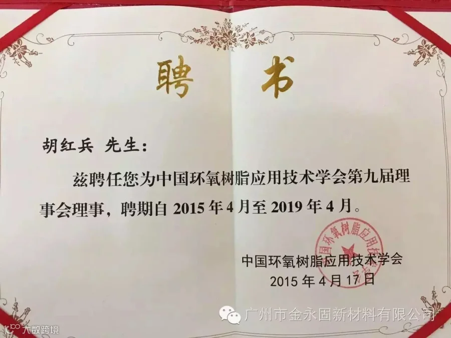 恭喜我司总经理胡红兵同志被聘任为中国环氧树脂应用技术学会第九届理事会理事!