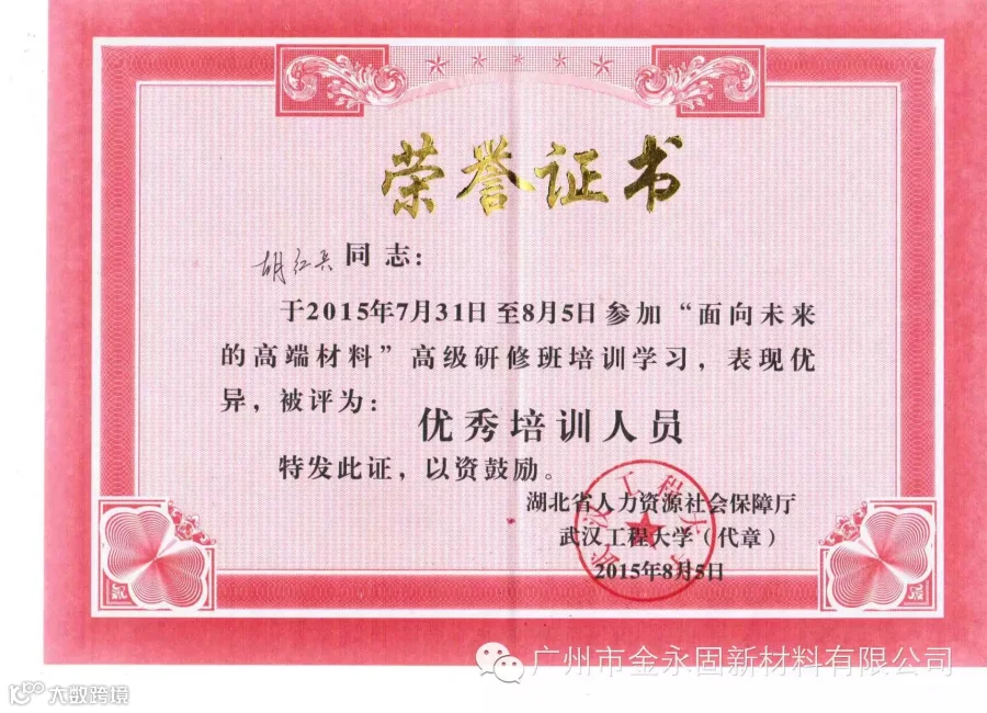 我司总经理胡红兵同志参加了此次培训,不仅担任了第四小组组长,更被推荐为了优秀培训人员,特别颁发了荣誉证书。