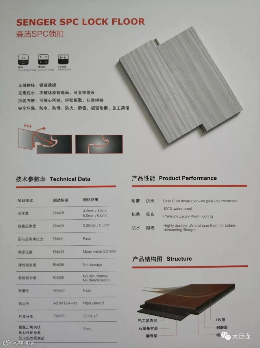 日前,有大巨龙集团浙江卡曼国际最新研发的《森洁》系列SPC快装地板领先上市。
