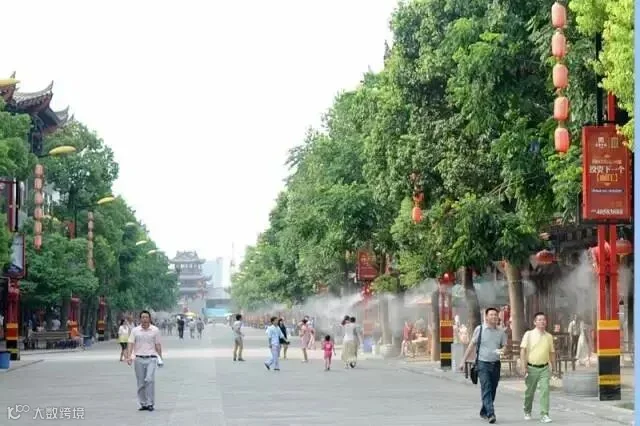 随着酷夏来袭,长寿菩提古镇喷雾降温设施已经开启,1500的喷头从大牌坊延伸到万寿广场!
