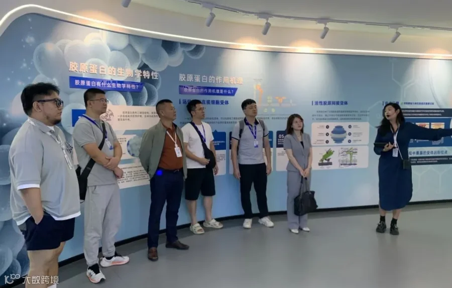 在参观期间,佟刚董事长重点介绍了展馆内新增设的“全球认证墙”及其战略意义。该展区呈现了公司国际化进程:2023年正式设立香港分公司,构建全球化运营的桥头堡;2025年核心原料成功完成FDA备案,取得进入欧美高端市场通道的“入场券”;近期越南考察标志着东南亚市场战略落地的关键进展。