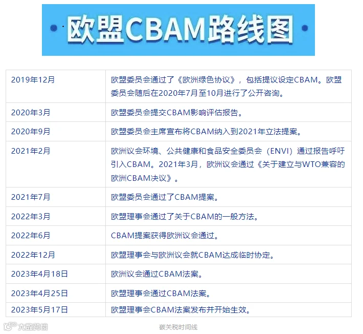 5月17日,欧盟碳边境调节机制(CBAM)最终定稿,同意对进口钢铁、水泥、铝、化肥、电力和氢气征收二氧化碳成本。此次CBAM覆盖电力、钢铁、水泥等六大行业,而当前我国碳交易市场仅纳入了电力行业,这意味着未纳入碳交易市场行业的企业向欧盟出口产品时,暂无法通过支付国内碳排放成本来合法减免碳关税。