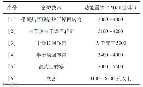 当然不同的水泥生产工艺也会导致消耗的能量不同。目前水泥生产主要分为干法工艺和湿法工艺。具体能量消耗可以参考如下列表: