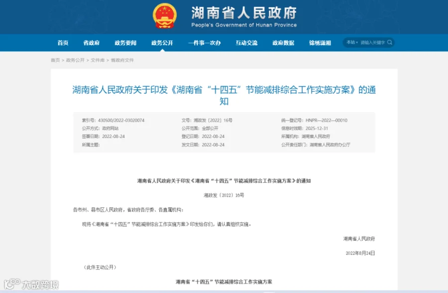 近日,省人民政府印发了《湖南省“十四五”节能减排综合工作实施方案》(湘政发〔2022〕16号)(以下简称《实施方案》)。