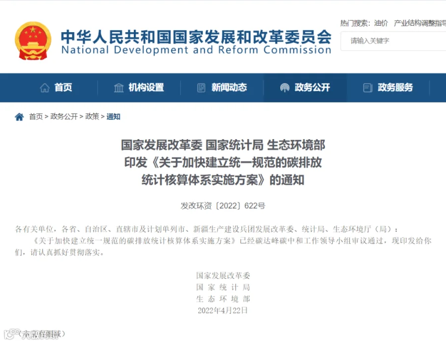 近日,国家发展改革委、国家统计局、生态环境部公布了《关于加快建立统一规范的碳排放统计核算体系实施方案》(以下简称《实施方案》)。《实施方案》的出台对于夯实碳排放统计数据基础、提高碳排放数据质量、落实党中央关于“尽早实现能耗‘双控’向碳排放总量和强度‘双控’转变”的要求意义重大。