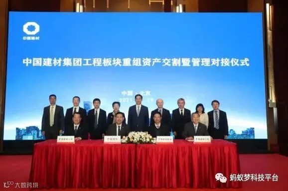 在仪式上,中材国际与中国建材股份、中国建材总院、中国建材工程的代表签署了资产交割确认书。
