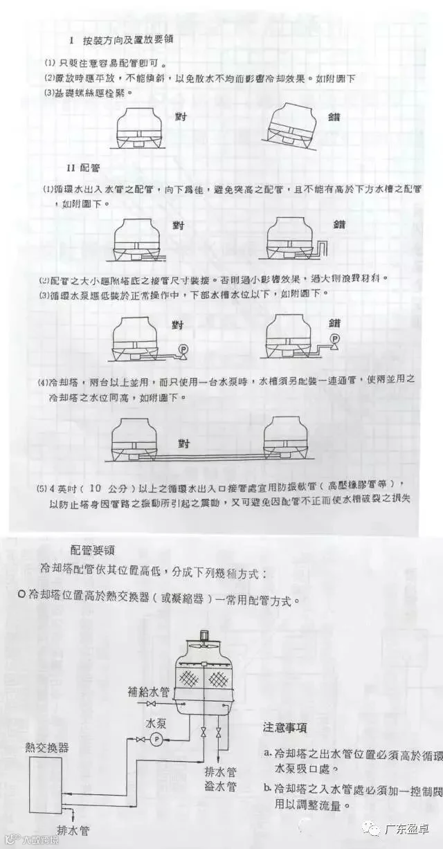 冷却塔经过一个星期运转后,必须重新更换循环水,以便清除管路中之杂物尘垢;