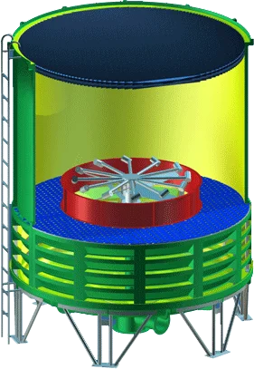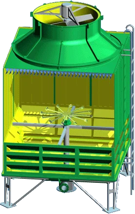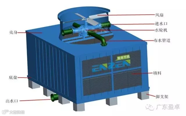 空气通过风扇强制诱导,从底部进入冷却塔;使用强制诱导风扇。