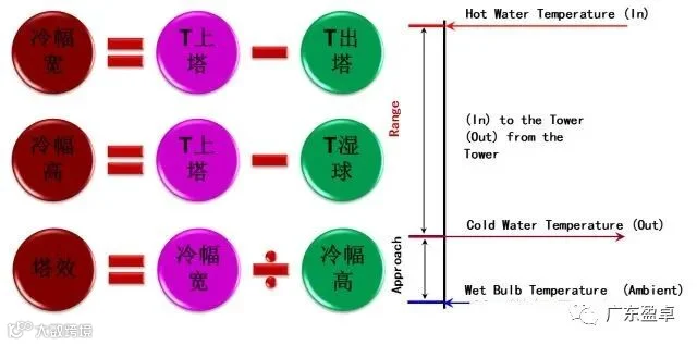冷却塔容量=冷却水质量流量×水的比热容×温差;