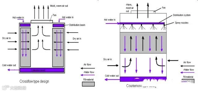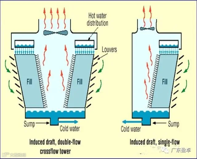 分成横流式诱导通风冷却塔和逆流式诱导通风冷却塔。