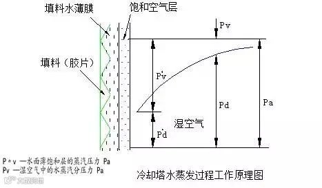 在湿式冷却塔中,热水的温度高,流过水表面的空气的温度低,水将热量传给空气,由空气带走,散到大气中去,水向空气散热有三种形式: