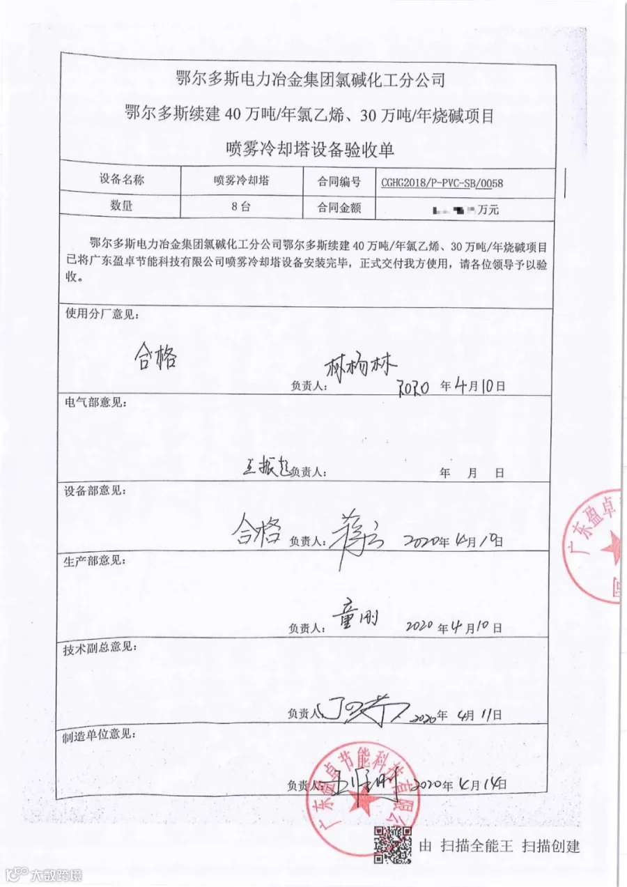 该项目顺利安装完成并通过验收标志着我司承揽大型喷雾冷却塔项目的能力,广东盈卓的实力,是有目共睹的!