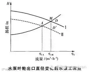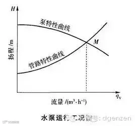 在生产实践中,水泵的运行工况点是通过管路的特性曲线与水泵的特性曲线确定的(M工况点,见下图)。在选择和使用泵时,使水泵在高效区运行,以保证运转的经济和安全。
