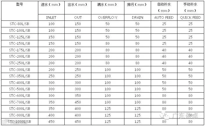 STC系列低噪音逆流式水轮机方塔配管尺寸表